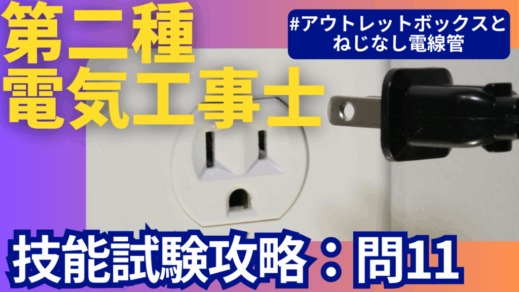 公表問題11は「コンセント+2灯2点滅+金属管(ねじなし電線管)+アウトレットボックス」がテーマの問題です。