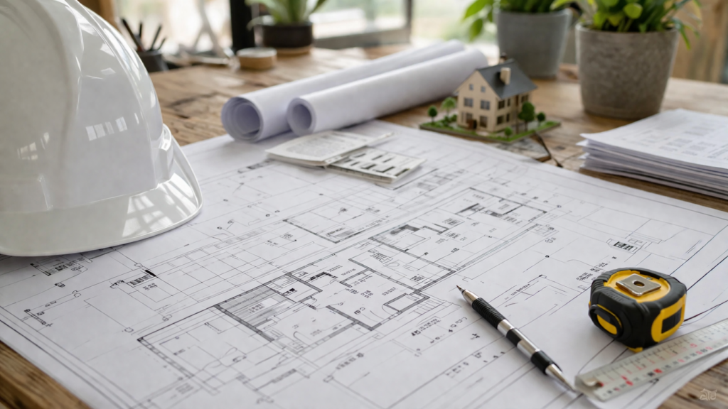 クリアファイル、A4の方眼メモ、油性ペン、スマホ、モバイルバッテリー、3〜5mのメジャーです。図面と現況を照らし合わせるとき、寸法の当たりを取れるだけで理解が一気に進みます。
